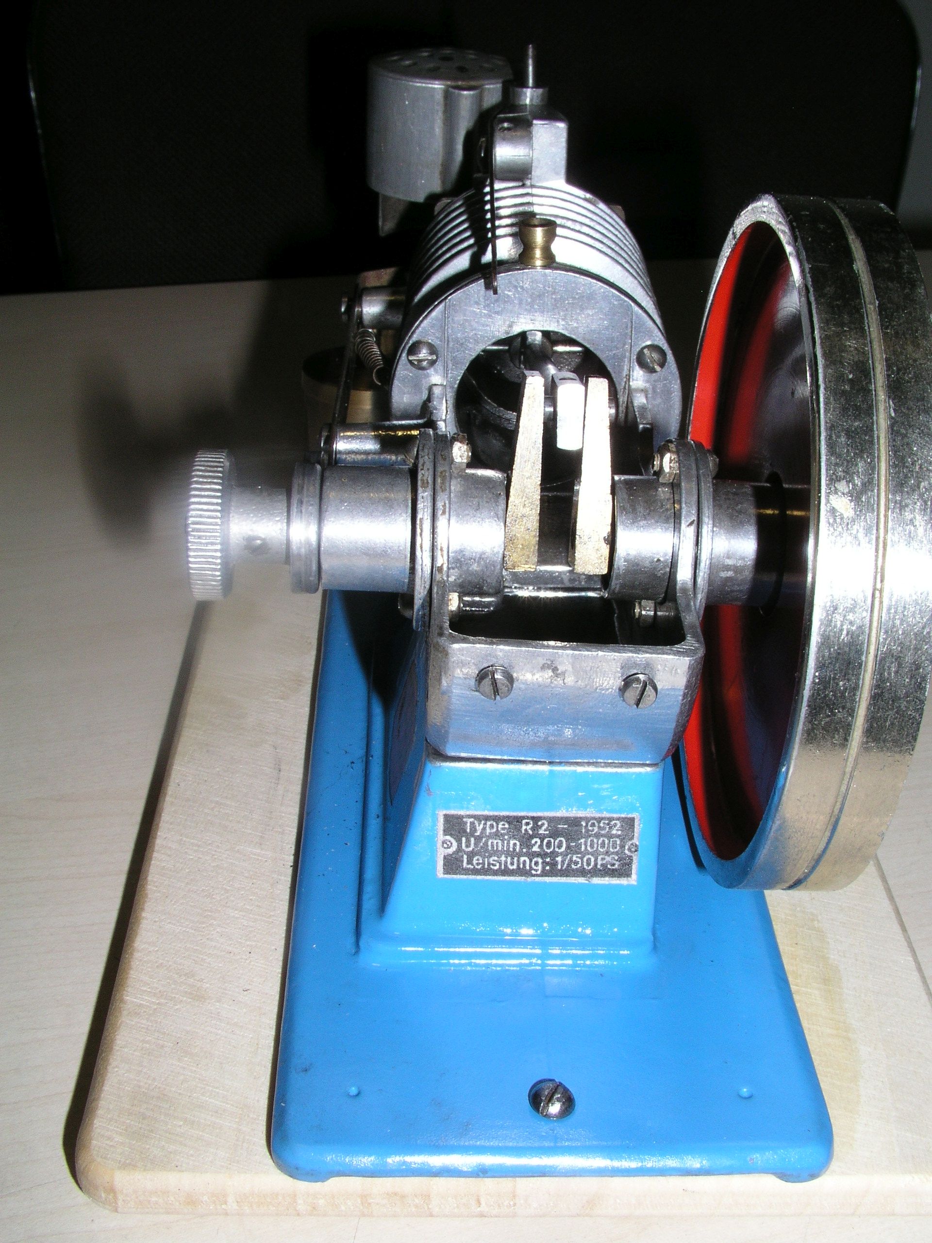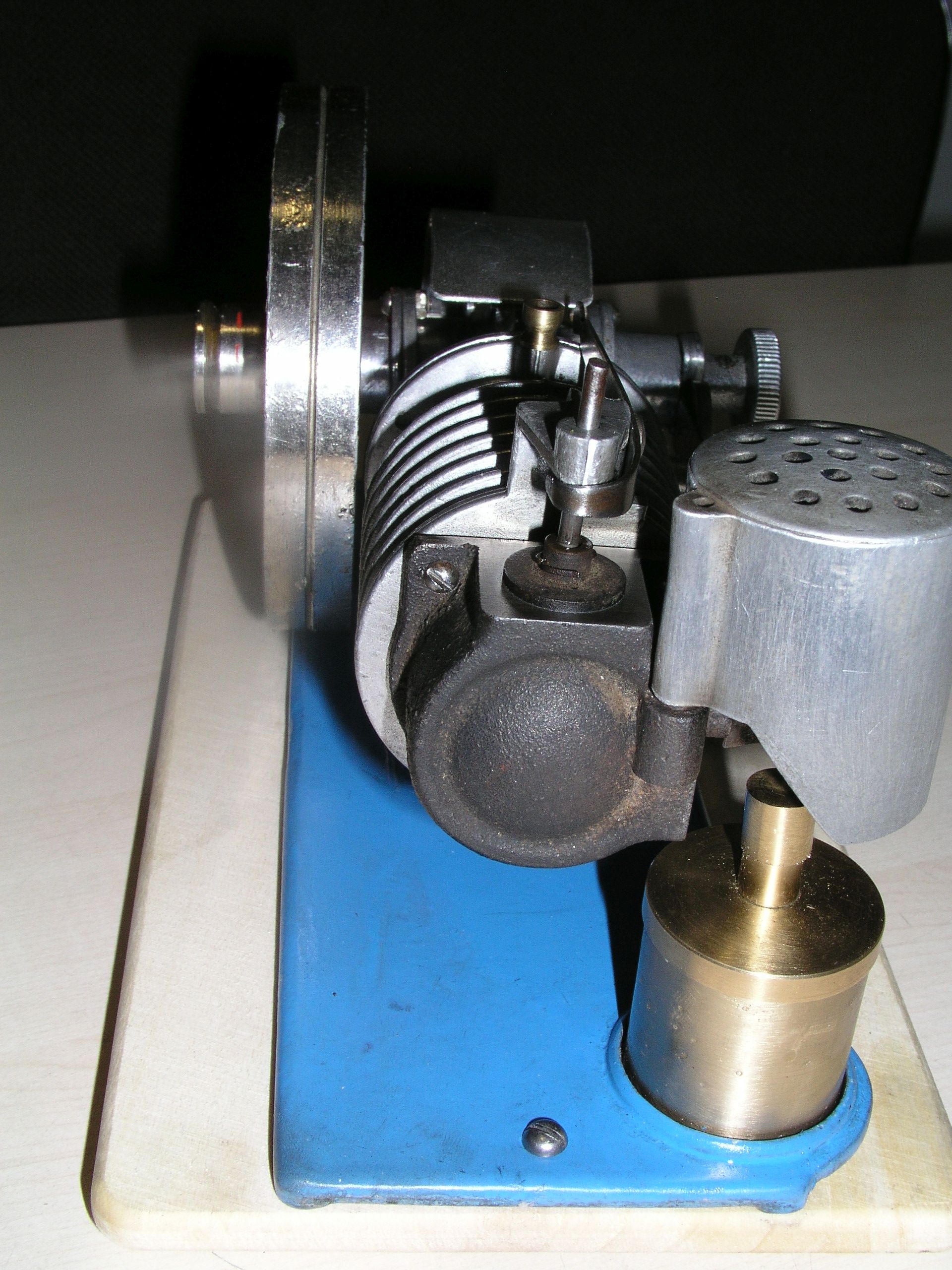 Zustand des Motors nach Restauration Wenn die Laufbahn des Kolbens vor Inbetriebnahme mit Petroleum lt. Anleitung geschmiert wird und das Schwungrad bei angehobenem Auslassventil kräftig angeworfen wird, muss der Motor etliche Umdrehungen ausführen (siehe Video). Der Motor springt dann in der Regel sofort an. Im kalten Zustand kann es vorkommen, dass mehrmals angeworfen werden muss. Mehr Freude macht dieser Motor mit einem Grafitkolben, absolut leichtgängig
