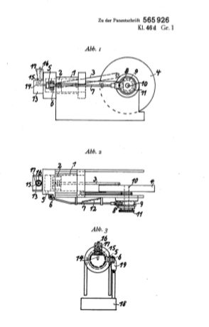 Rebi-Motor ohne Kolben aus dem Jahr 1956 und Patentschrift